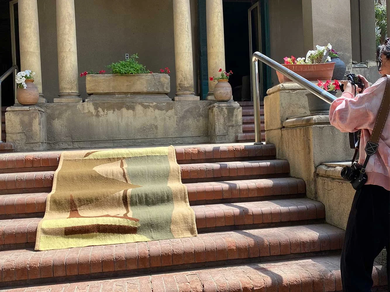 A sanctuary nearby the river bank, there is a slight hum of traffic outside that has become modern-day Cairo. The garden is still loyally tended to, which makes it feel alive. Pieces that have been featured are Pyramid, Caravan, Fayoum and Fragments. All wool and handmade in Egypt by local artisans.